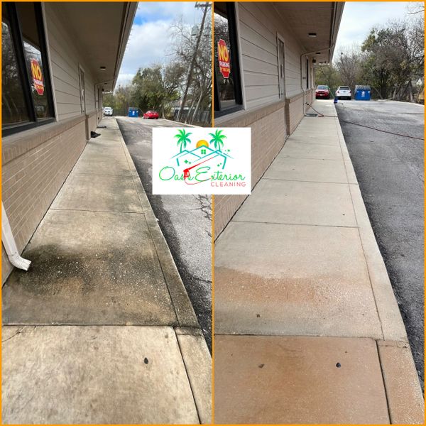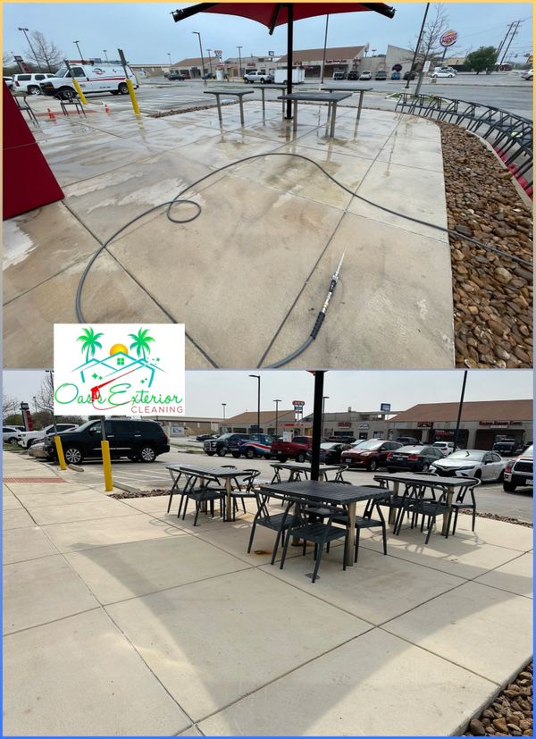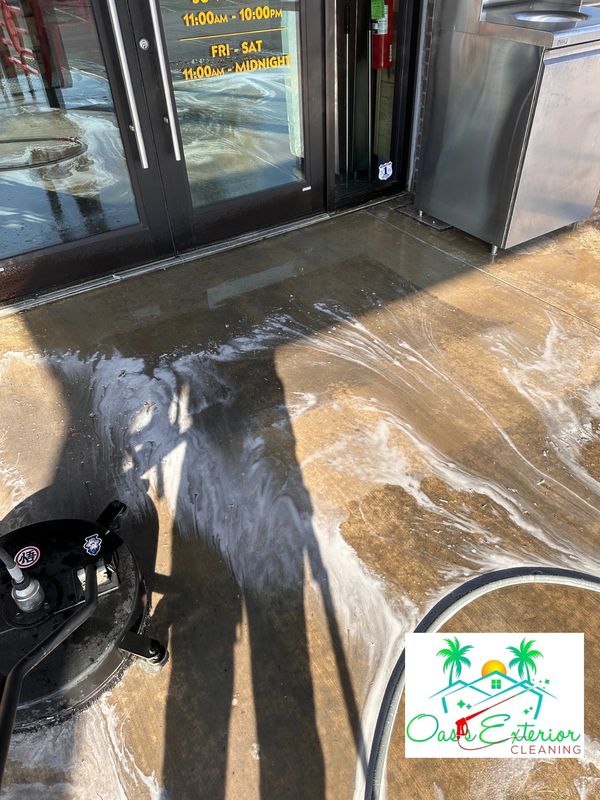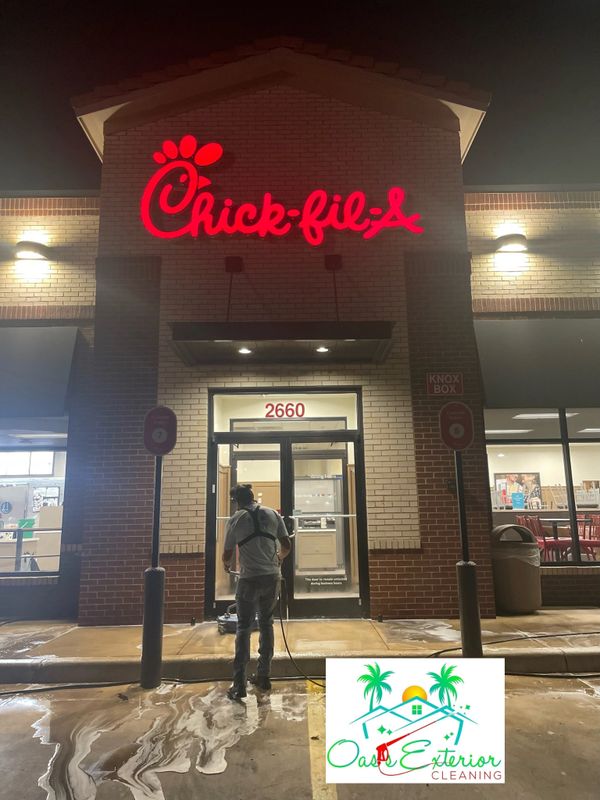 Oasis Exterior Cleaning LLC is your partner in maintaining a pristine business exterior. From restaurants to shopping centers, gas stations, and beyond, we specialize in elevating your business's curb appeal. Our tailored approach includes high-quality pressure washing for walkways, dumpster pads, and drive-through areas, along with gentle soft washing for building exterior surfaces. We offer flexible cleaning schedules and utilize industry-leading solutions to tackle tough stains like grease stains, oil, mold, and other organic overgrowth, ensuring your property always looks its best. Let us help you make an unforgettable experience for all your customers with Oasis Exterior Cleaning LLC.